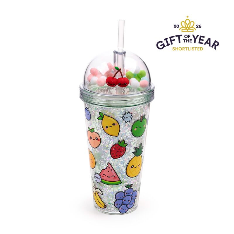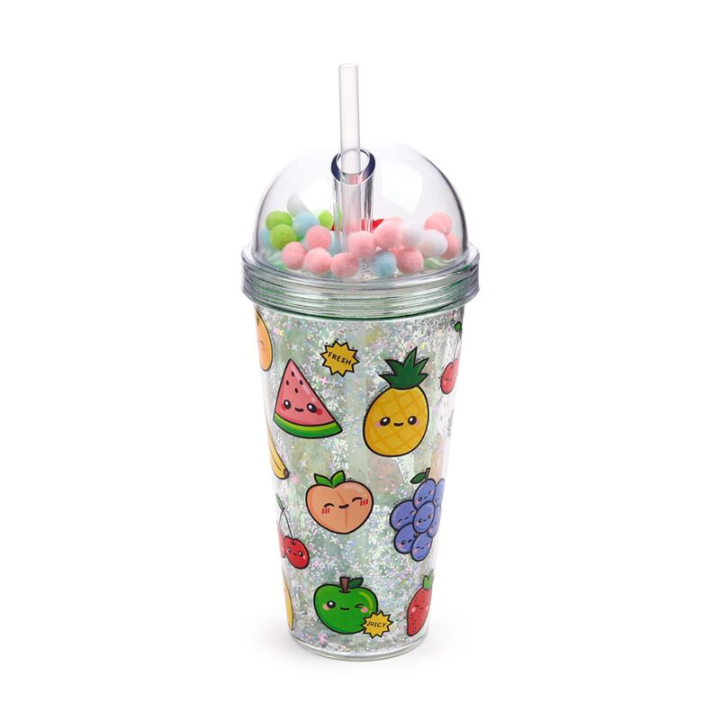 Pohár Pomponos Tetővel és Szívószállal - Gyümölcsök - Foodiemals