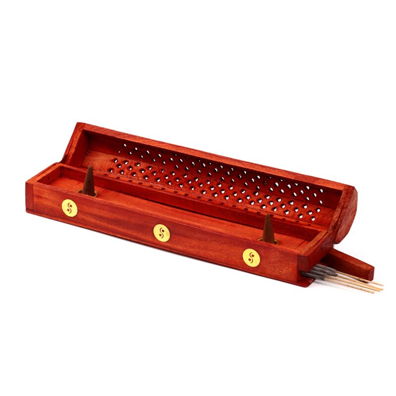 Füstölő Égető Doboz, Mangó Fából - Yin Yang Berakással