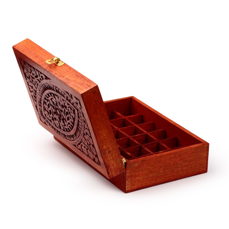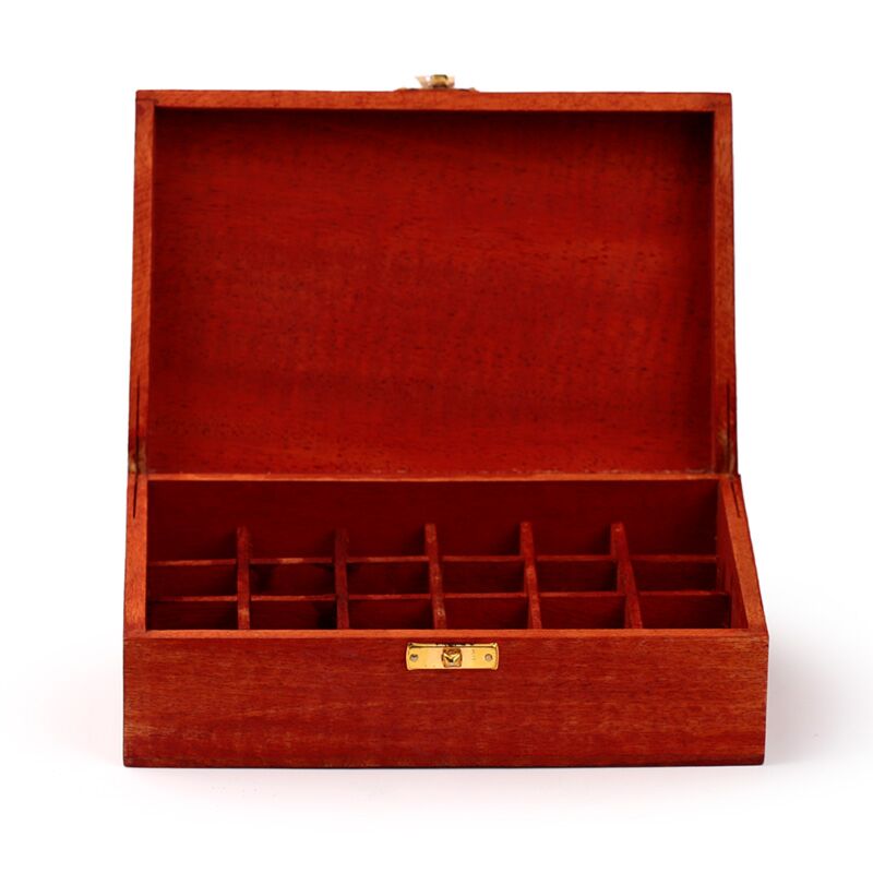 Esszenciális Olaj Tartó Doboz, Mangó Fából - Design 1 (24 Üvegcséhez)