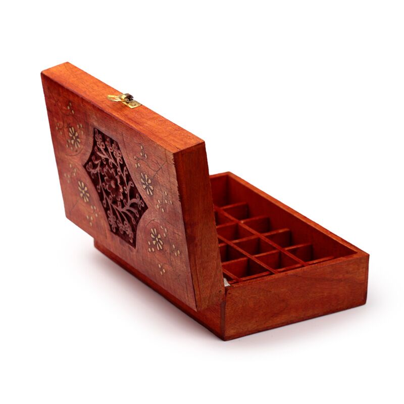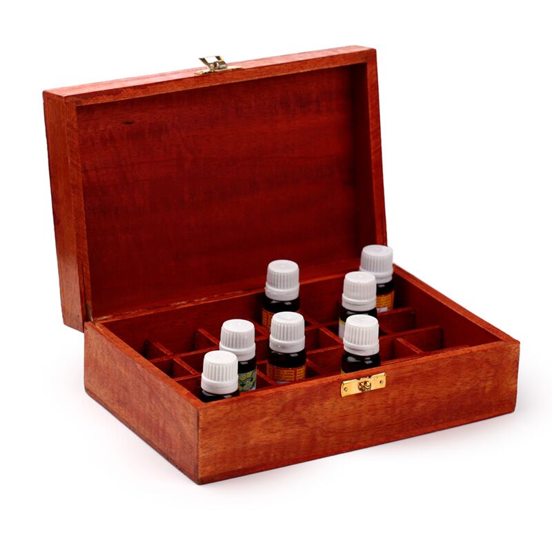 Esszenciális Olaj Tartó Doboz, Mangó Fából - Design 2 (24 Üvegcséhez)