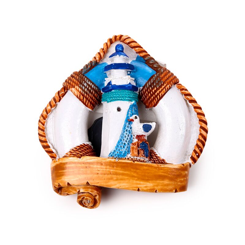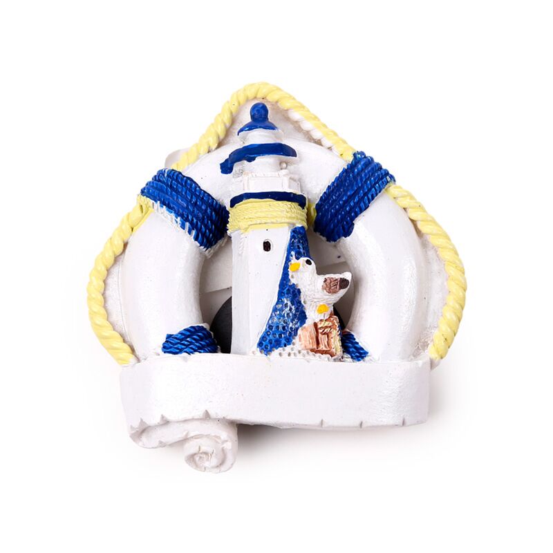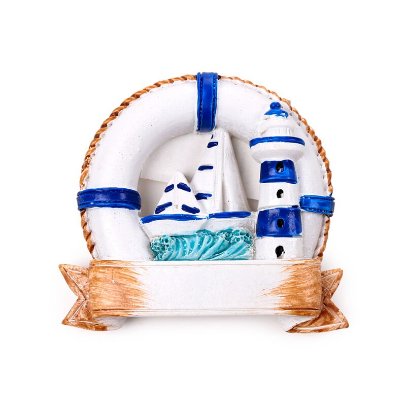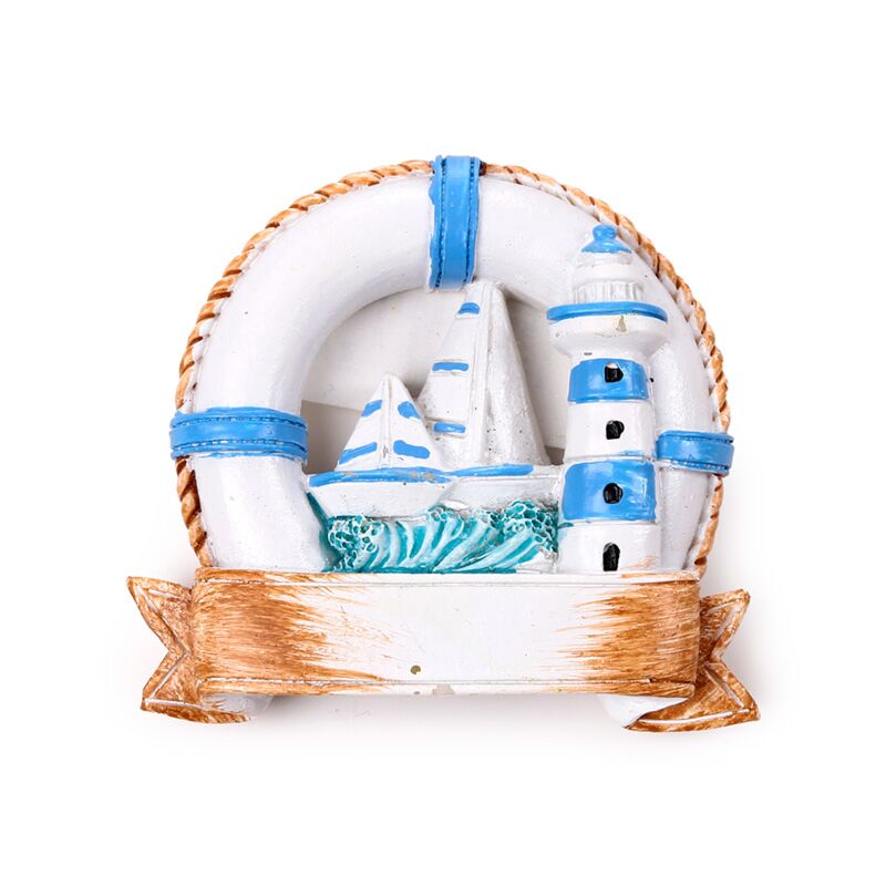 Hűtőmágnes, Tengerpart - Mentőgyűrű Vitorlás Hajóval & Világítótoronnyal