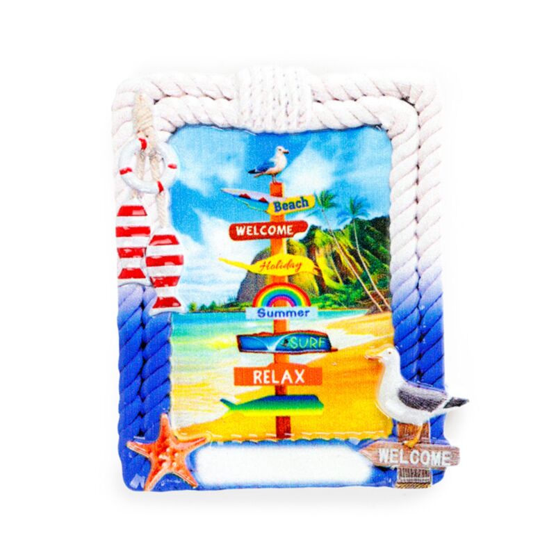 Hűtőmágnes, Tengerpart - Köteles Keretű Képben Tengerparti Táblák & Házikó