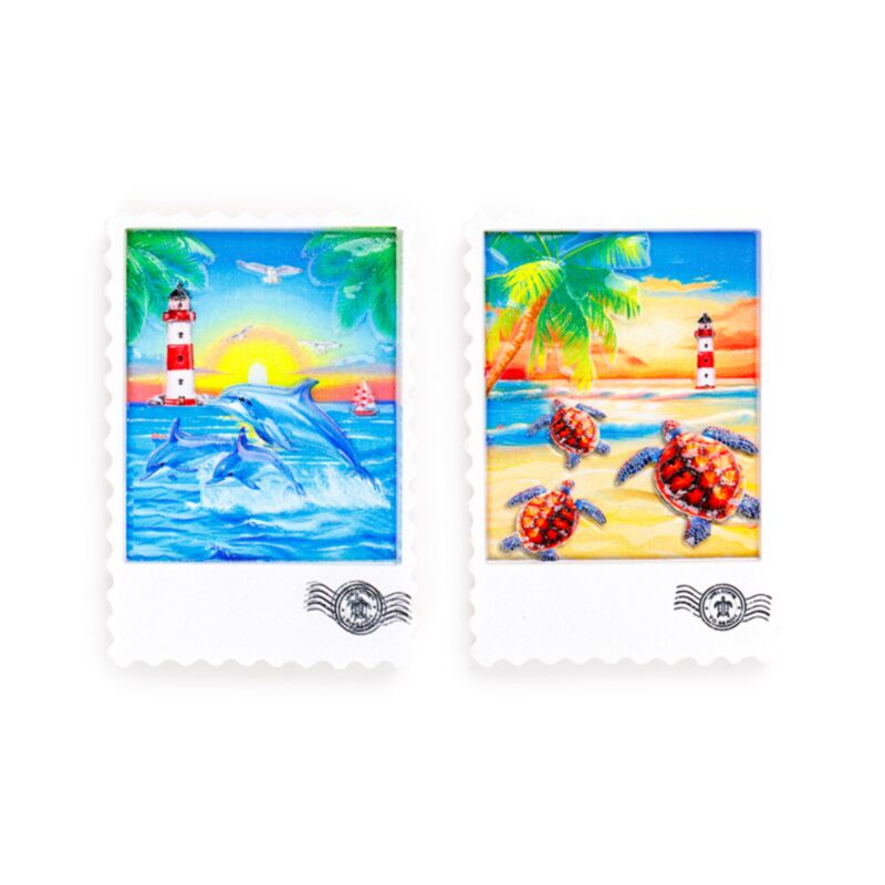 Hűtőmágnes, Tengerpart - Bélyeg Formában Delfinek & Teknősök