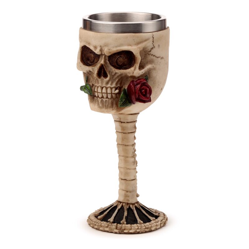 Dekor Kehely - Koponya Vörös Rózsával a Szájában