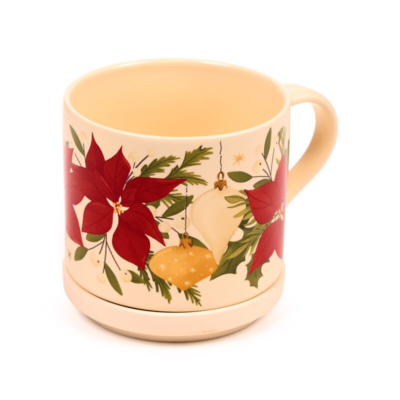 Bögre és Alátét/Fedél Szett, Karácsonyi - Mikulásvirág - Karácsonyi Növények